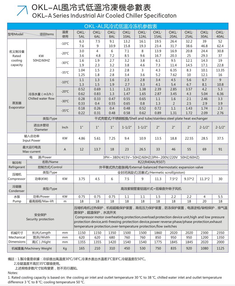 歐科隆牌風(fēng)冷式冷水機(jī)之制冷心臟采用全密封低噪音,振動(dòng)小,高效能省電進(jìn)口名牌壓縮機(jī),電器控制全部采用進(jìn)口名牌原件,熱交換器采用殼管式冷凝器,換熱效能高,便于清洗保養(yǎng)
